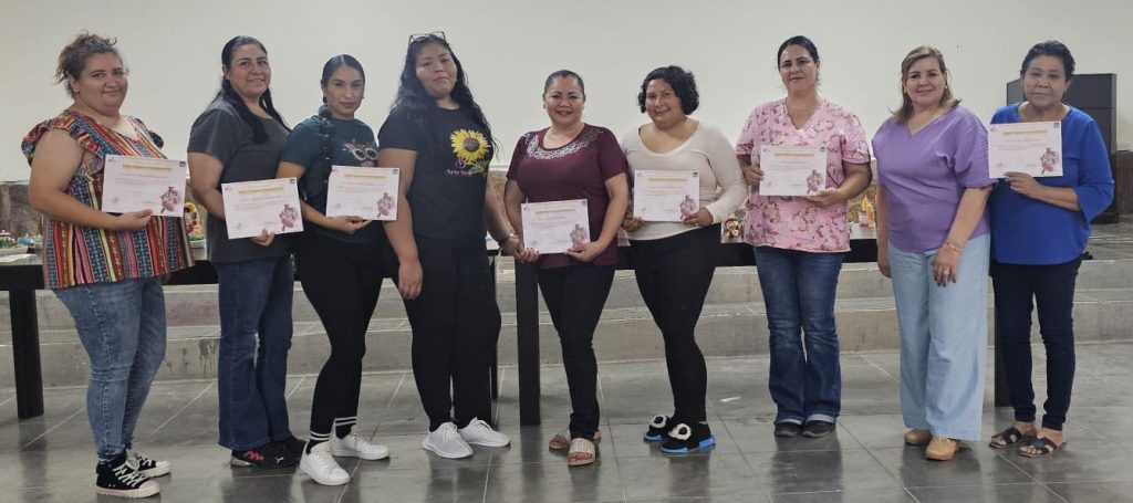 La Presidenta municipal hizo entrega de los reconocimientos a las personas que participaron en el curso de fabricación de velas artesanales, impartido por Beatriz Spencer en el auditorio municipal.